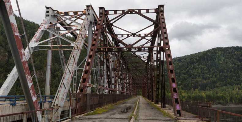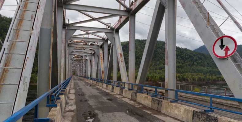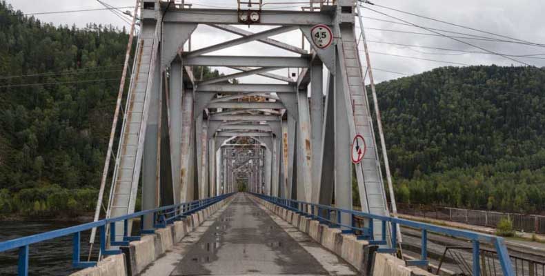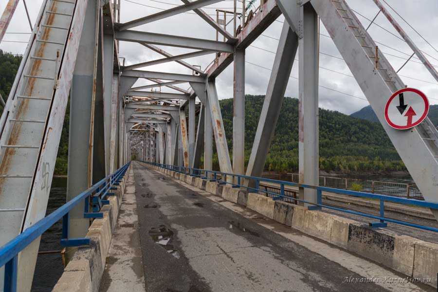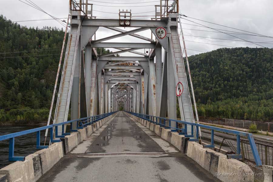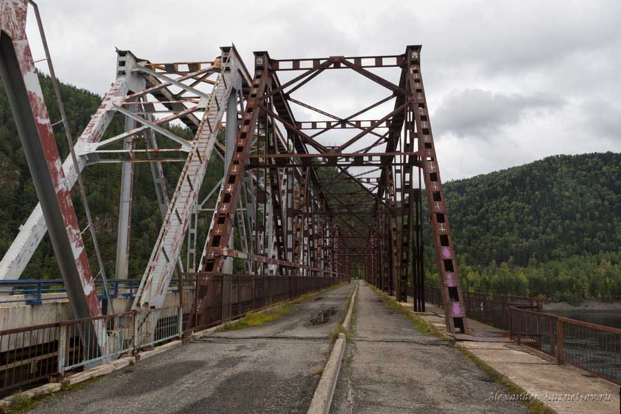 Сам городок уже не очень ухоженный, железная дорога вдоль берега Енисея, которая возила строителей к ГЭС, уже заросла. Вот только мост у поселка построили новый.
