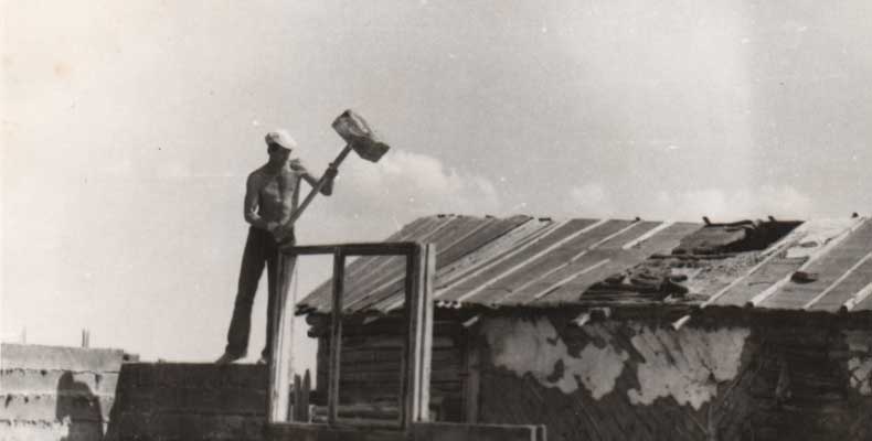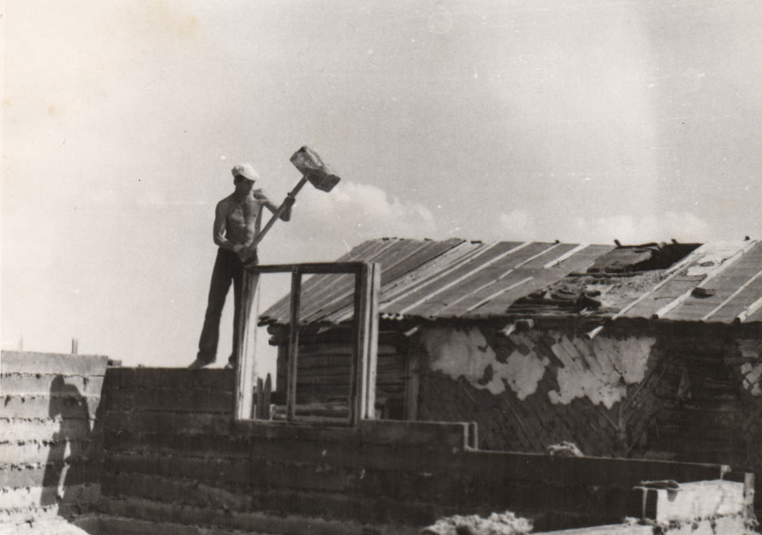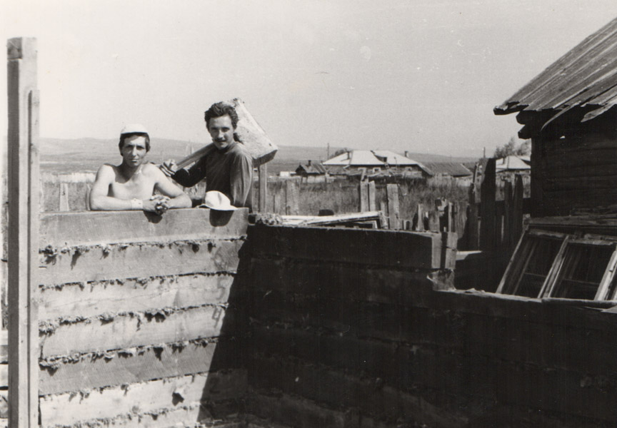 Мы лили коровники. Это сначала глубокая траншея (метра полтора в глубину), которую надо залить бетоном, а потом опалубка вверх для отливки стен. Бетон месили тут же в больших деревянных корытах, которые сами и сделали в начале работы.