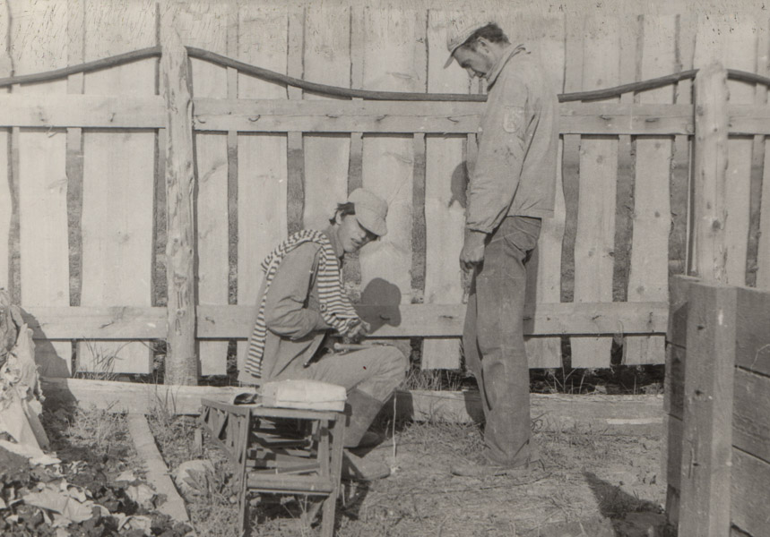 Еще нас с Тягом послали однажды сделать крыльцо на почте. Мы делали крыльцо целый день, и получилось узко, коряво и неудобно. Мы тогда взяли и сломали его минут за 10. Больше всего запомнилось, что когда местные стали обсуждать нашу работу, то все говорили, как будет здесь неудобно пьяному: тут он споткнется, тут он не удержится за перила…