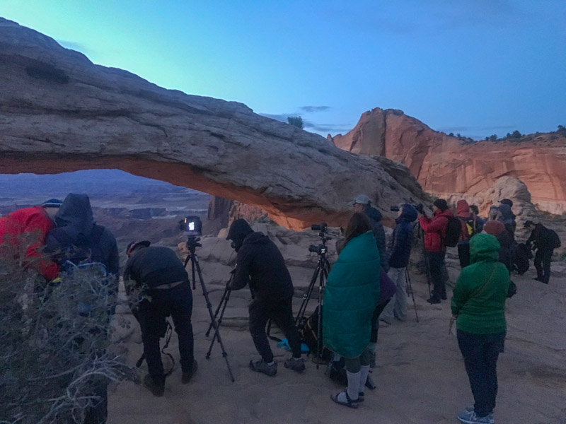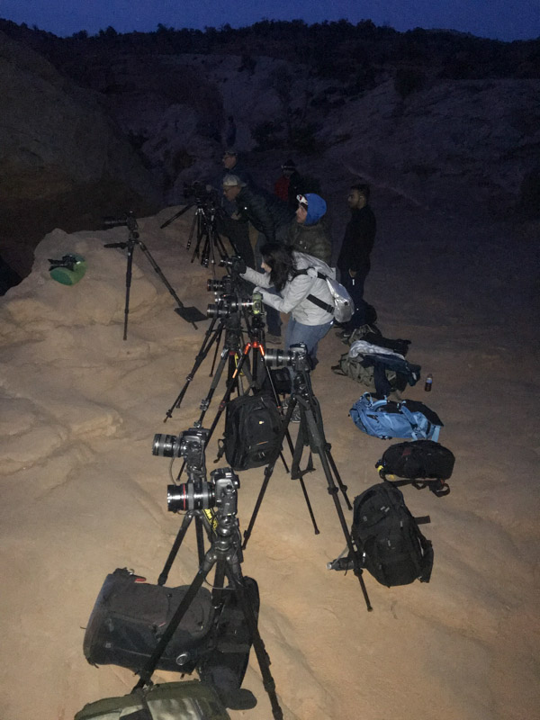Мне ехать до арки из Моаба час. Я был пятым. Поскольку днем я не сориентировался какое место лучше, то встал где-то посередине, ближе к правому краю.