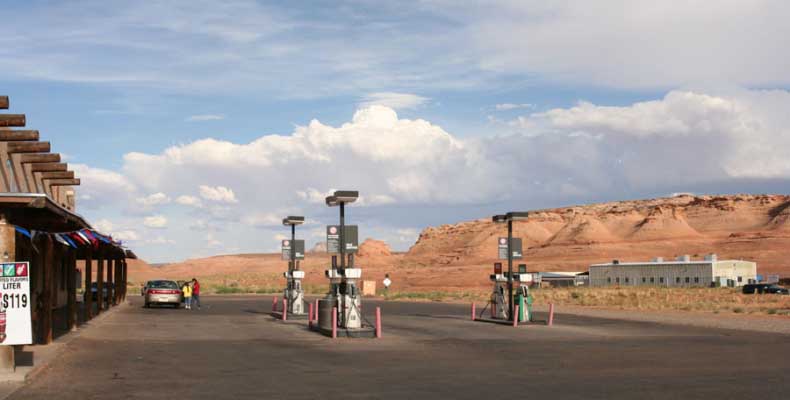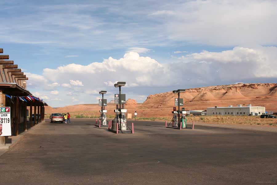 Вообще, город Page находится на краю резервации индейцев Навахо и индейцев там полно. Да и дорога к нему идет вдоль резервации. Когда ехали, обратили внимание, как резко победнели постройки. Стиль другой, а атмосфера чем-то напомнила наши деревни... И сами индейцы стоят в фанерных будках у каждой достопримечательности и торгуют всяким барахлом сувенирным, какие-то картинки из песка... Я это не люблю и никогда не покупаю, чтобы дома потом лежало и пылилось. Навахо пьют, как я понимаю и мне объяснили, по-черному, и им все пофигу.