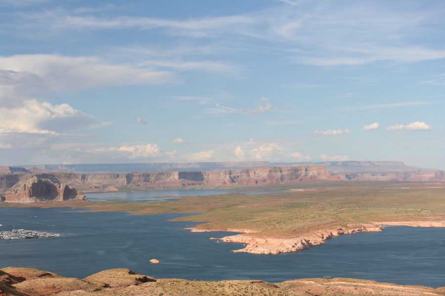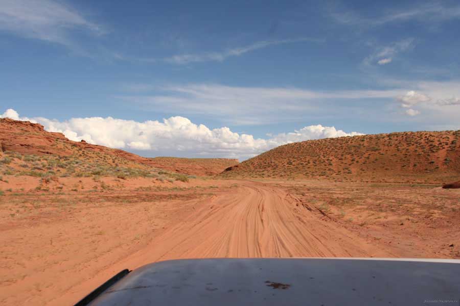 Время к обеду, смотреть уже нечего, я решил реализовать свою мысль о каньоне Антилоп. К сожалению, на карте мне его найти не удалось, также, как не удалось найти интернет на юге Юты. Но наконец один рейнджер в visitor center ткнул мне в карту пальцем, указав точное место. Оказалось, прям рядом с городом Page, где я уже был. "Нет - сказал рэйнджер - сегодня не успеть. Они закроются в четыре, туда только ехать 3 часа" итд. Но зная их расчеты по времени всех маршрутов, сел в машину, газ до полика и по Глен каньону (Glen canyon - широченная долина) меньше чем через два часа были на границе территории резервации индейцев Навахо у самого каньона.