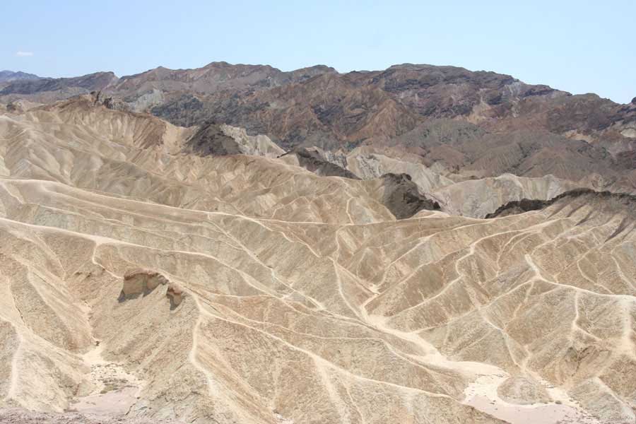 Дороги - супер. Долина оказалась здоровая. На ее южном краю нашел мотельчик, сделанный из бывшей постройки работавшей здесь горнодобывающей компании. Там есть холодные напитки, туалет и приятная пара в возрасте, которая этот мотельчик содержит. Кто-то там даже живет, охотиться приезжают на кого-то и долину посмотреть. Первая точка осмотра Забрийски пойнт, но я до нее не доехал, вылез из машины, залез на песчанные холмы и сделал несколько снимков, далее снимки со смотровой площадки Забрийски пойнт. Кстати, Забрийски - это мужик, который эту точку нашел.