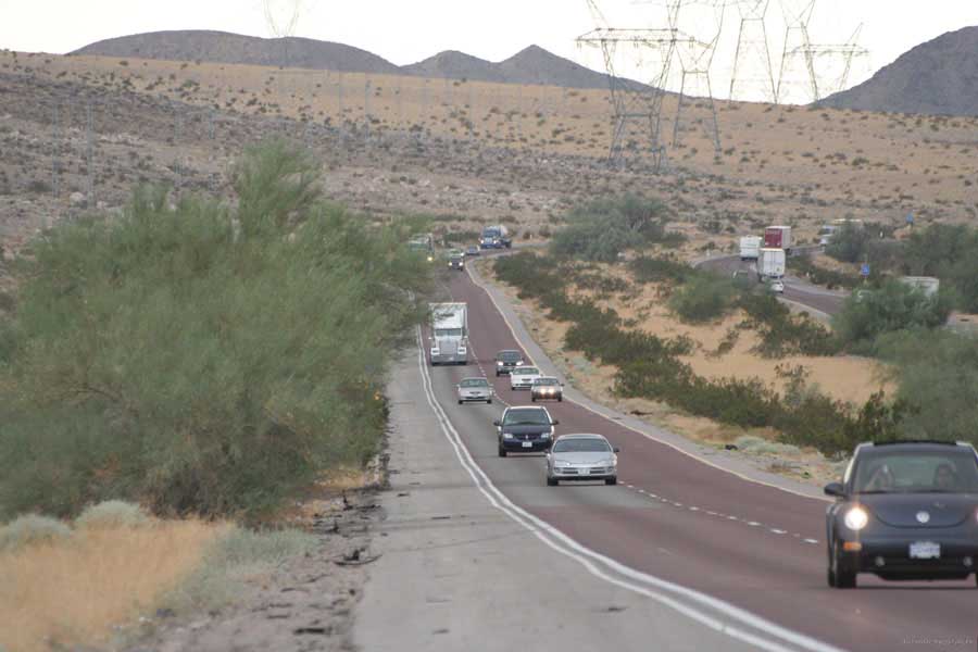 По приезде в Лас-Вегас, кстати, позвонил приятелям в Вашингтон и они сказали: "А, вы в Лас-Вегасе? Поедите в Долину смерти?". Это и стало первым национальным парком, в который я заехал. Сухая долина в двух часах езды от Лас-Вегаса на север. Находится на границе Невады и Калифорнии. По дороге остановился и сделал, на мой взгляд, несколько типичных видов пустыни Невады. Просторы, конечно...