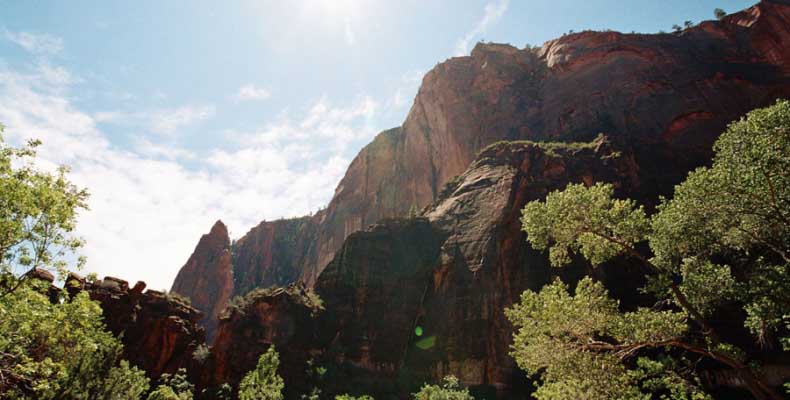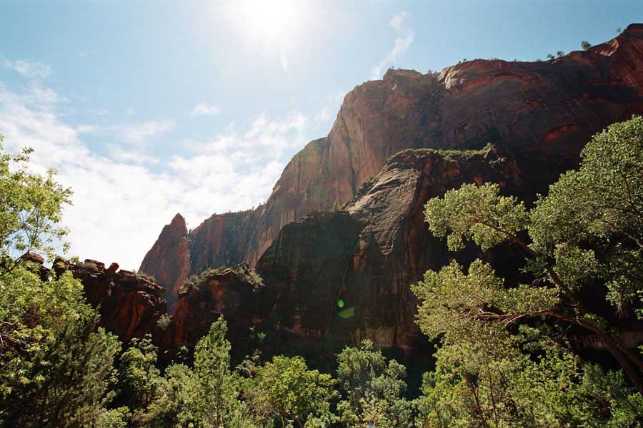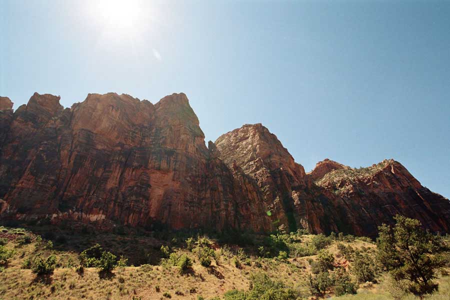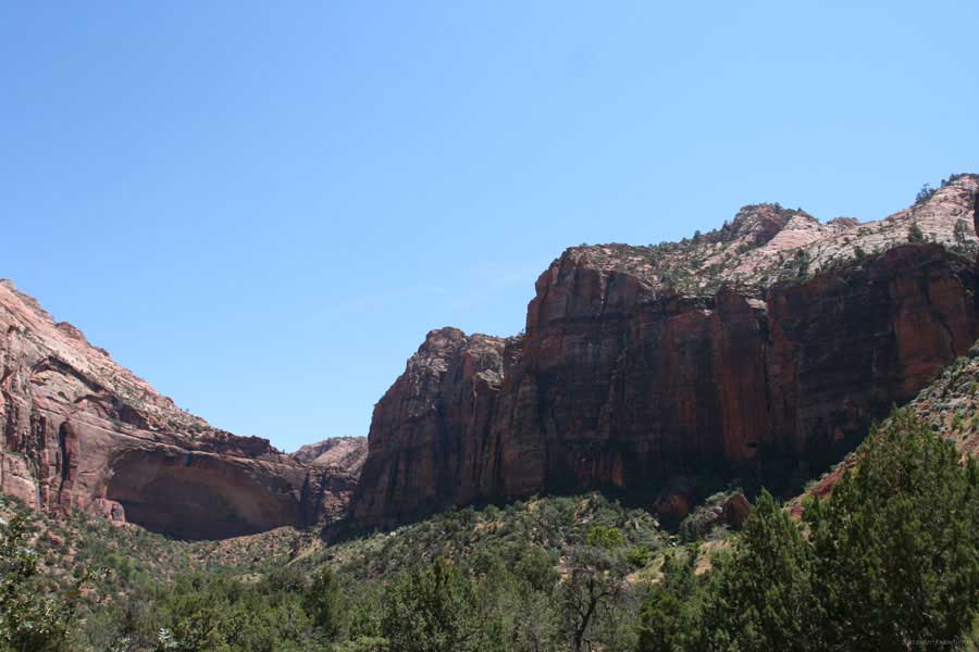 Так вот. Исходя из опыта прошлых путешествий, на уикенд мотельчик надо снять заранее. Вся Америка в уикенд перемещается, как сумасшедшая, и к вечеру пятницы можно места для спанья не найти. Было утро пятницы и самое время обосноваться на пару дней, тем более, что это было стратегическое место. Бросил вещи - и вперед, в Заян каньон (Zion), от Канаба 31 миля. Вообще лозунгом этого района (Kane County) графства Кэйн является красный камень (Red Rock). Там все Red Rock. Отели, мотели, каньоны, поселки, дороги. На мой взгляд, это и не камень вовсе, а в основном глина твердая. Отель, кстати, тоже Red Rock County Inn был.