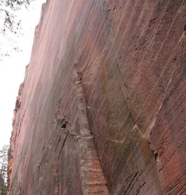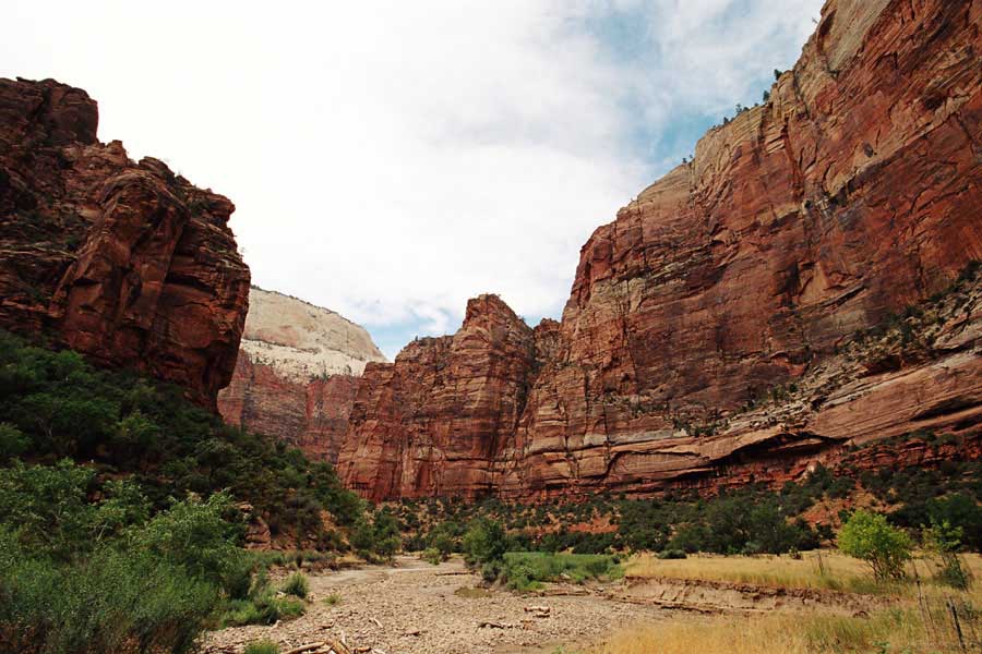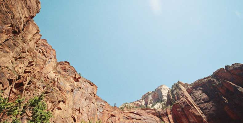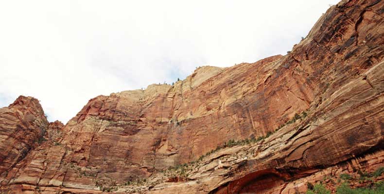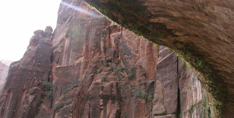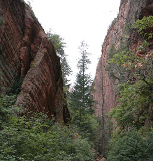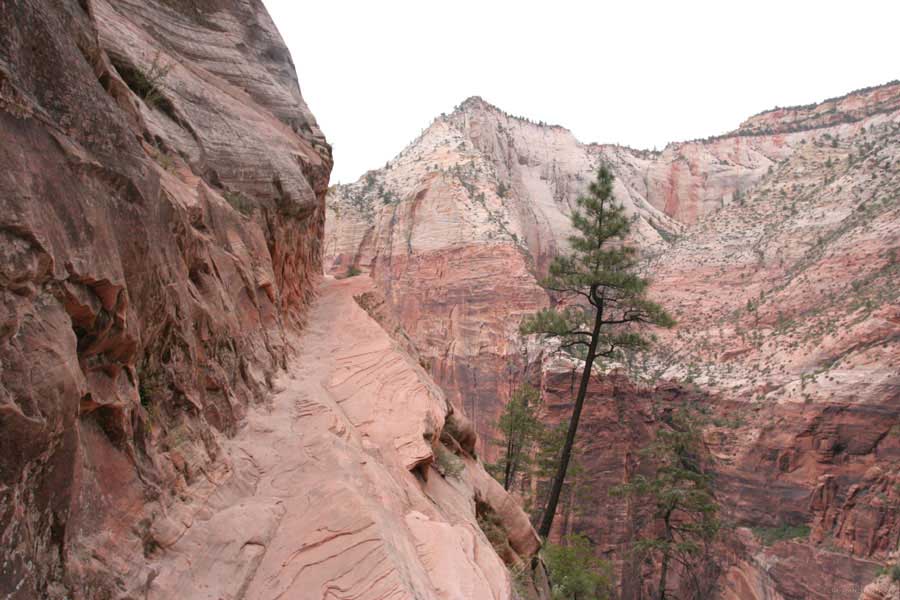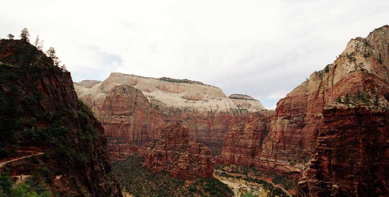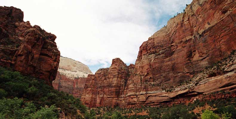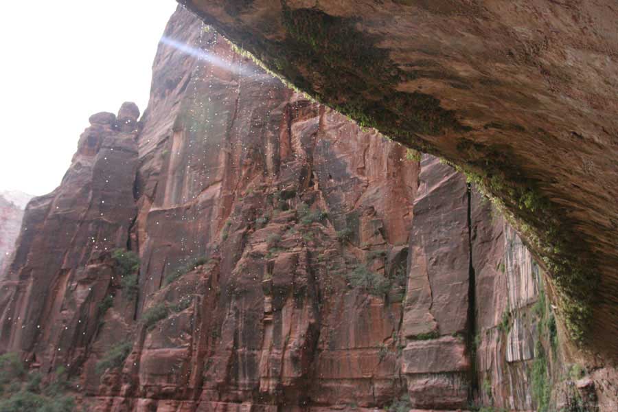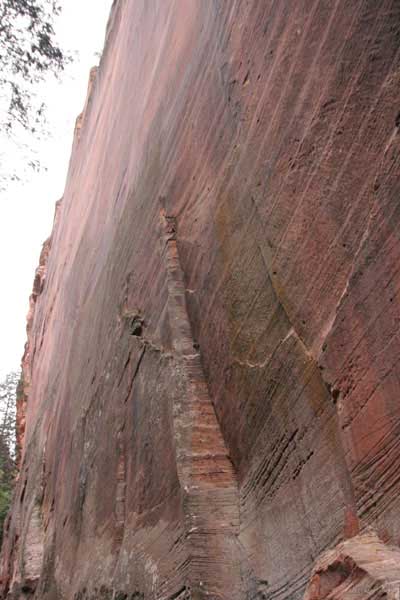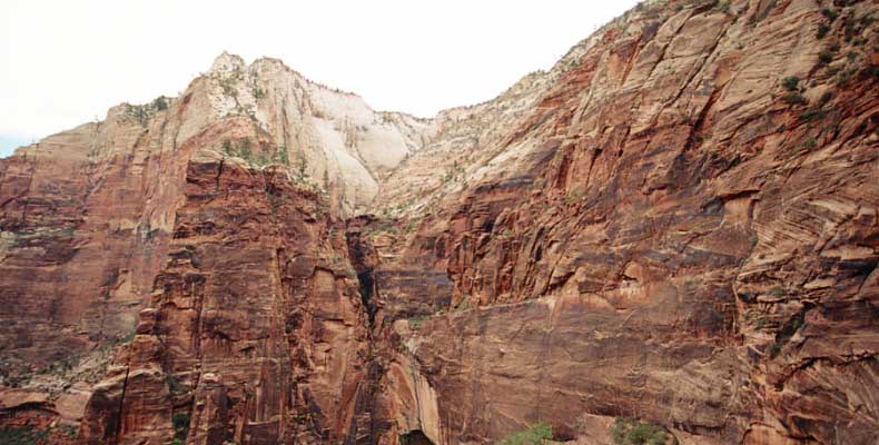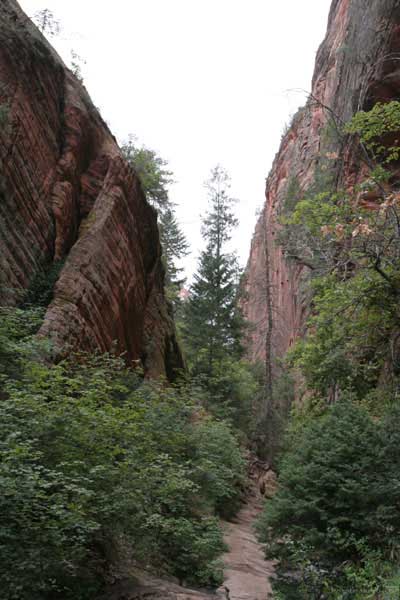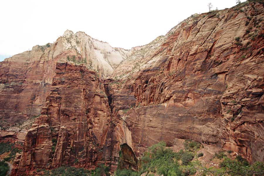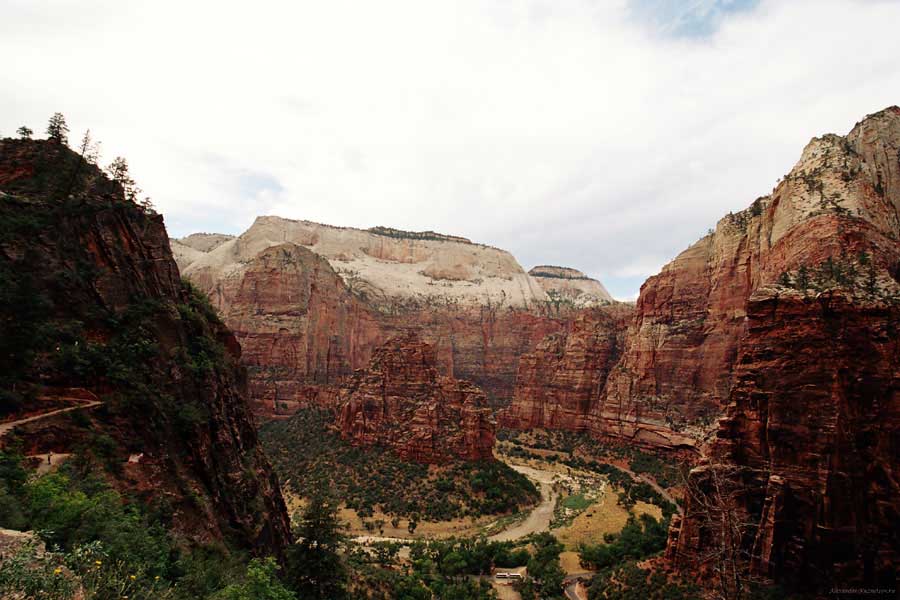 Заян каньон - молодой и небольшой. Дорога в отличие от Гранд идет понизу. Очень живописно. Въезд - те же 20 баксов и небольшая очередь. Как выяснилось, мы въезжали с заднего проход. Visitor Center и всякие шатлы-автобусы были с западной стороны. К ним въезжать надо с 15 магистрали от Cedar city. Дорога сильно петляет по дну каньона и идет через пару туннелей. Один коротенький, а другой длинный и узкий, так что туда днем пускают то с одной стороны, то с другой. Полудуплекс, в общем. Длинный - это километров 5 и построен давно. С Норвегией, конечно, не сравнить, но тоже ничего. Доехав до ближайшей остановки шатла, пришлось пересесть, потому что в глубь каньона ходит только автобус, либо машины, относящиеся к отелю (дому отдыха), который внутри. Внутри той части, которая закрыта, остановок 6-7 до конечного круга. От каждой идут пешеходные маршруты. Маршруты делятся на три категории, кстати, так же, как и во всех других каньонах и парках. При въезде в каждый каньон тебе вместе с билетом дают газетку и иногда карту. Там все написано. Easy - самый простой маршрут - для инвалидов. Реально для инвалидов. Там на инвалидной коляске можно проехать, и инвалиды ездят. Кстати в Америке инвалиды тоже люди, практически нет ограничений в передвижении. И тротуары, и автобусы, и все оборудовано под коляски. Если они уже даже по каньонам лазают... Следующий уровень Moderate - типа усложненный, посложнее, в общем. И третий Strenuous - сложный, значит. Опасно, в общем, у кого голова кружится, то не ходите и т.д. Я засидевшись в машине, рванул вверх по трассе в так называемый спрятанный каньон (Hidden canyon). См. фотос. Потом оказалось, что маршрут был Strenuous. Это потому еще я понял, что на некоторых местах в скалы были вбиты крюки и на них цепь висела в качестве поручня, чтобы в пропасть не свалиться.