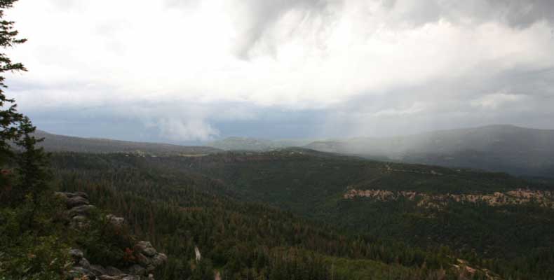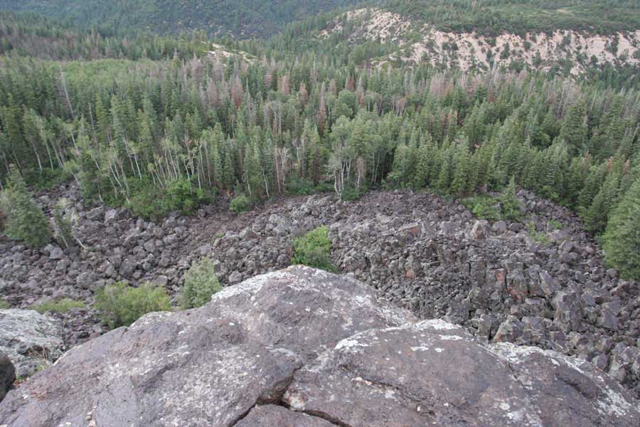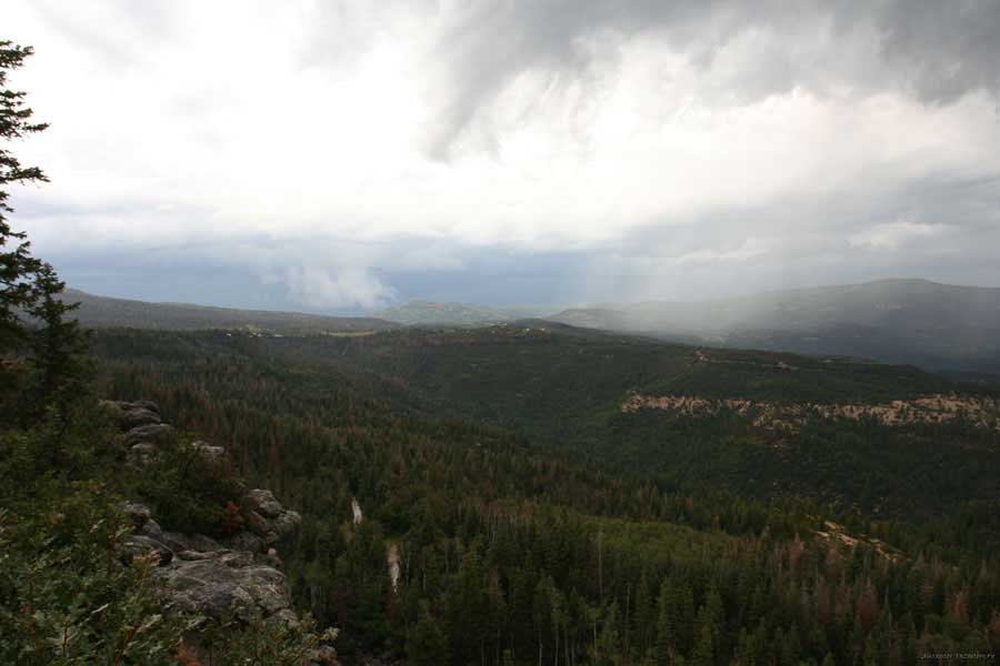 Еще там была плачущая скала, грот. Но поскольку посмотреть хотелось все масштабно, то после гуляния рванул в объезд на так называемую Lava point. Где лава должна быть видна и обзор красивый. После 30 миль живописной дороги наверху попал под град. (Это летом в жаркой Юте!). Молнии, град молотит по машине, но доехали все-таки. Вот она - лава, а обзор неинтересный. Дорога домой была в темноте, и уже было не поснимать.