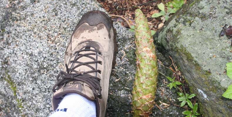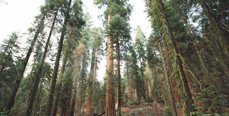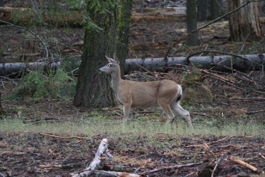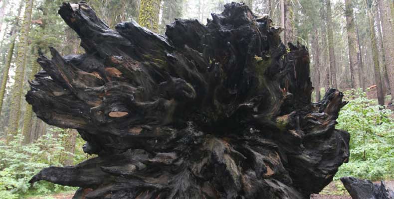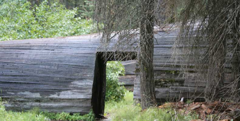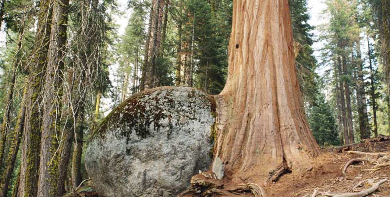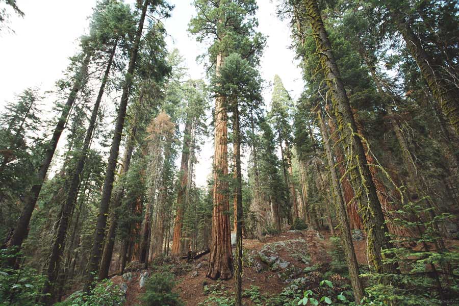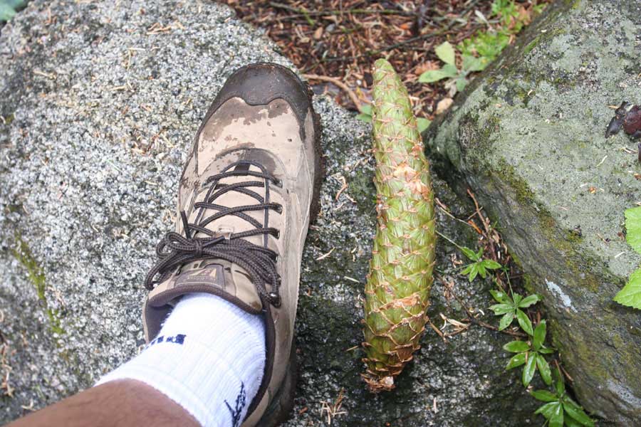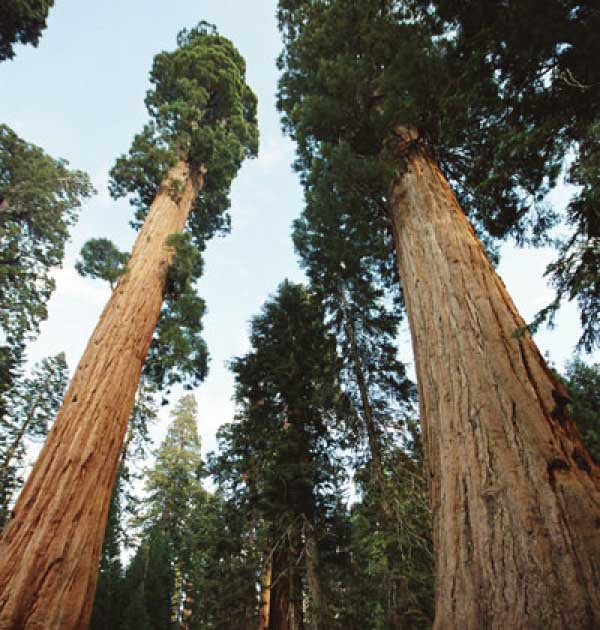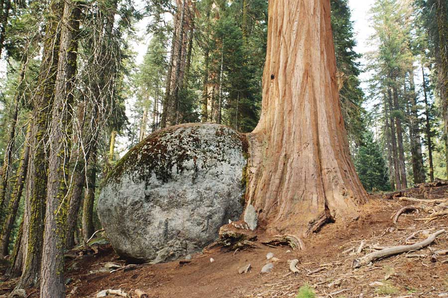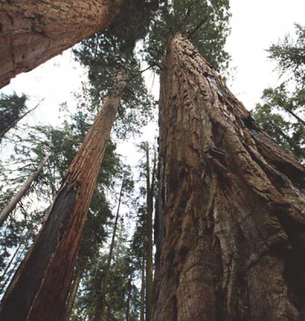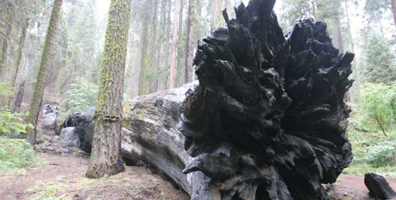 Дальше длинная дорога под вечер в темноте опять через Канаб, через Заян на 15 дорогу. Хотел ехать сколько можно, но сил хватило только до Лас-Вегаса. Понимая, что возможность переночевать - одна из лучших, искал мотель довольно долго. Все в основном для молодоженов и на неделю. Это явно не подходит. Наконец за бешеные деньги (баксов 60) около аэропорта нашел здоровенную комнату с протекшим потолком. Внизу естественно казино. Ничего интересного. Утром опять в путь. Это самый изнурительный переезд. Наконец часам к 15 я подъезжаю к парку секвой в Калифорнии. Все это как бы по дороге в Сан-Франциско. Но секвойи я хотел посмотреть давно. Вернее еще в Лос-Анджелесе. Я зашел в большой книжный магазин купить атлас или карты. Мой атлас с 1998 года я одолжил друзьям в Москве и здесь, в Калифорнии, пытался купить локальные карты или новый атлас. Кстати, атласа не нашел. Ничего не понравилось. Но с полки упала карта Кингс каньона и парка секвой. Естественно, я забрал. Так вот, по дороге в Сан-Франциско решил заехать и посмотреть, так ли эти деревья велики. Крюк получился приличный. Только в парке по серпантину надо ехать миль 20. На карте отмечено три места, где растут гигантские растения. Наконец приехали. Смотрю - и правда, гигантские. Похожие на большие сосны, только кора цветом светлее. Я почувствовал себя коротышкой из цветочного города, который на луне пытался продать акции гигантских растений. Этих самых. Или гномом лесным. Конечно, между секвойями растут обычные ели, но они им мешают. Секвойям нужен открытый свет, поэтому им хорошо, когда обычные ели сгорают от пожаров и секвойям дышится легче. Кстати, секвой тоже много упавших и обгоревших. Я не люблю людей фотографировать, но здесь надо было для сравнения.