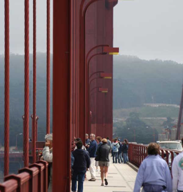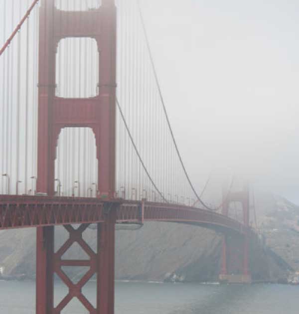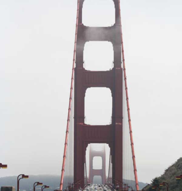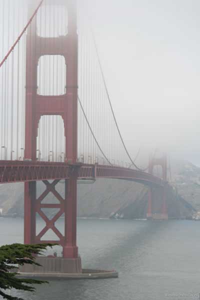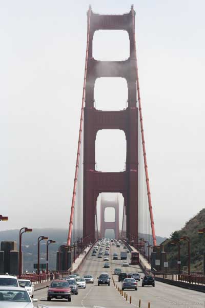 После парка спуск вниз по серпантину. Кстати, американские водители, когда видят, что какой-то дурак сверху по серпантину несется, на поворотах дорогу уступают. Но все равно до побережья в ночи доехать не успел, переночевал у тех самых индусов. Утром, через виноградники, через завтрак в чудесном городке Монтерей въехали в Сан-Франциско. Ну и гнусная погода же в этом городишке. Голден гейт всегда в облаках.