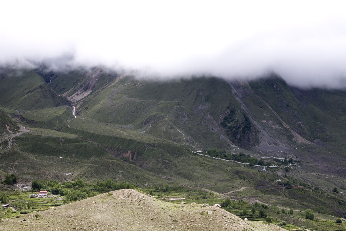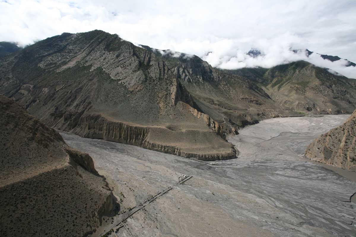 Дорога до Кагбени та же, по которой мы шли в 2007. Я вылез у мостика делать фотки. Все было по-другому. Облака низко срезаны, где-то на высоте 4000 метров. Солнца нет. Сейчас, когда я пишу текст, я еще фоток не видел. Кстати, это первый раз, когда я пишу по свежему следу – сижу в самолете Доха-Москва.