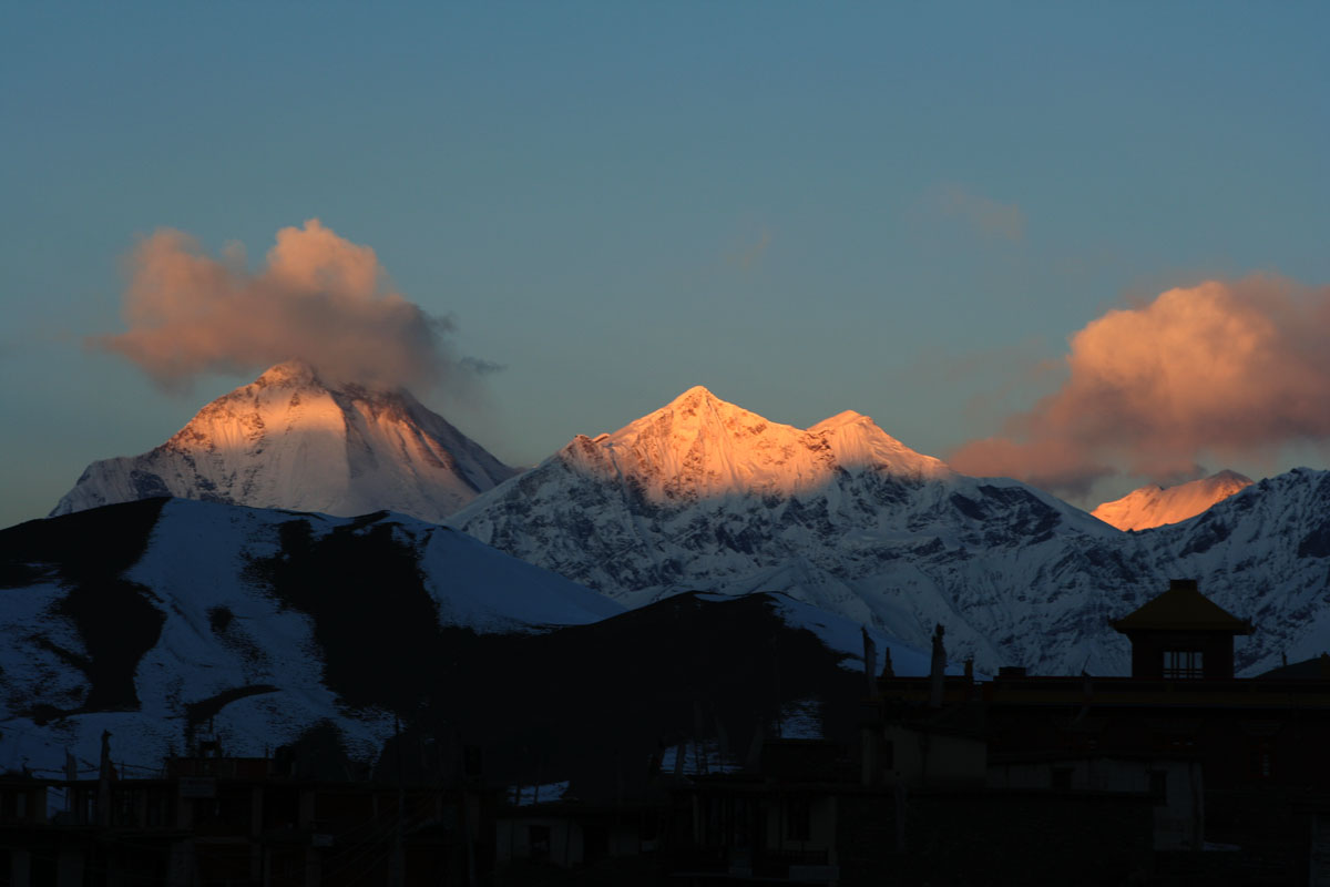 Утром светло и ясно. Тут лирическое отступление: кто не верит в карму и позитивное отношение мироздания, пусть пропустит абзац. Прилетев в Непал, я был серый и разряженный: самолетик не полетел, джипы менялись, над Муктинатом низкая облачность.