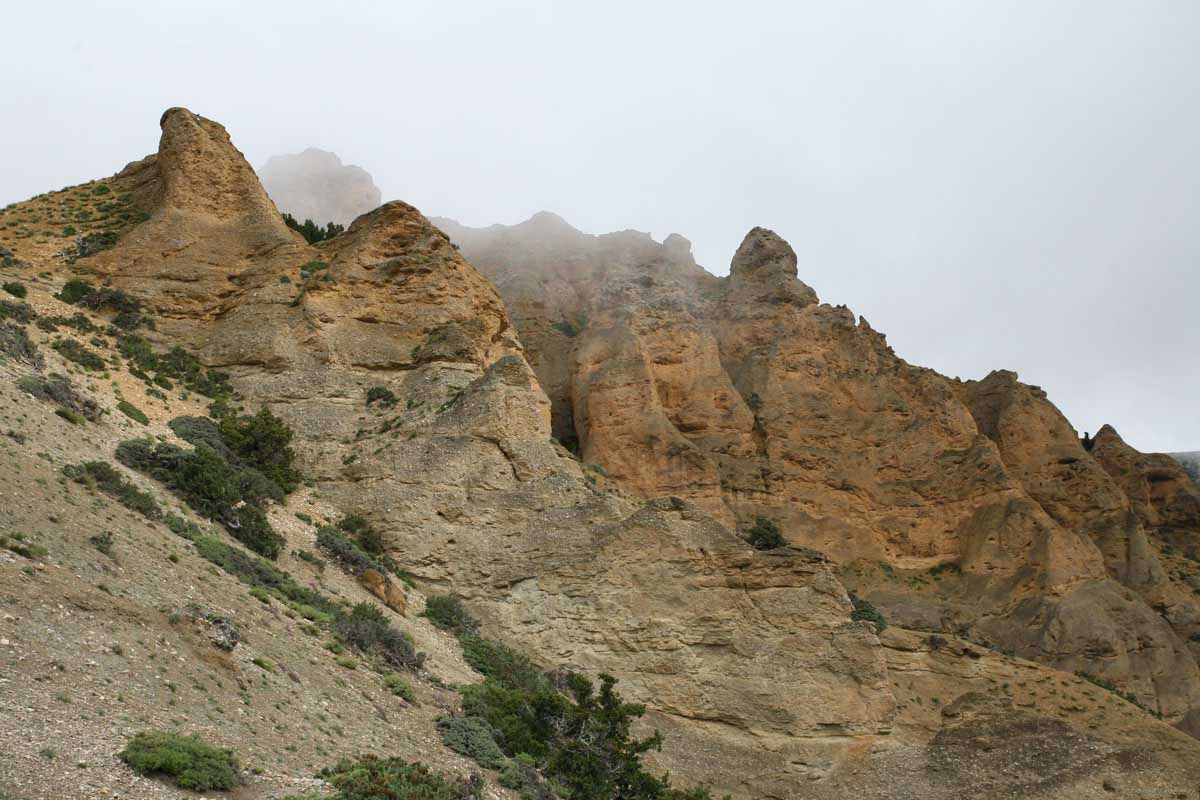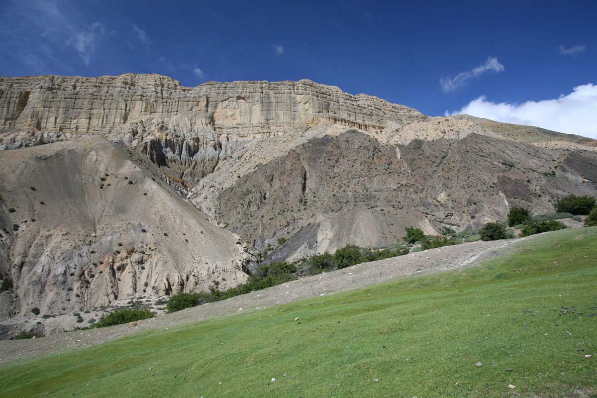 Мы на удивление быстро дошли до перевала Ни Ла, и путь показался мне простым и легким. Следов йети не было, поскольку не было снега. Я не смог найти место, с которого сделал вот этот легендарный снимок, но стена была на месте.