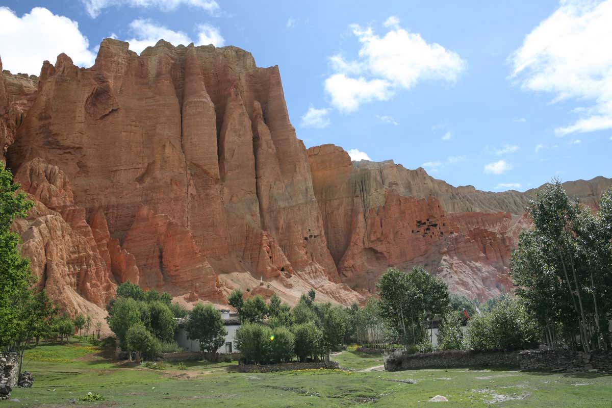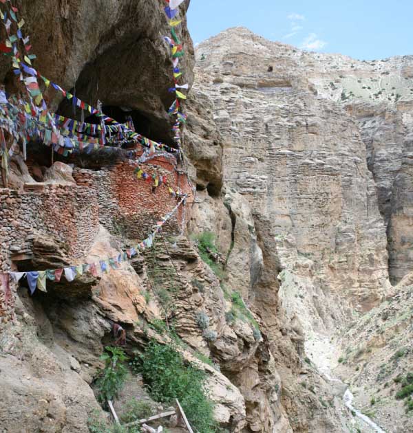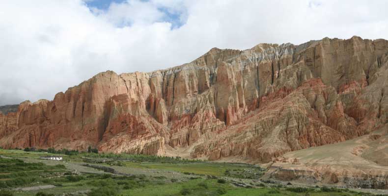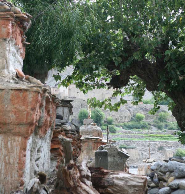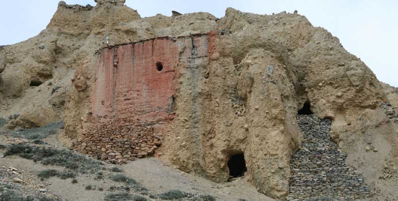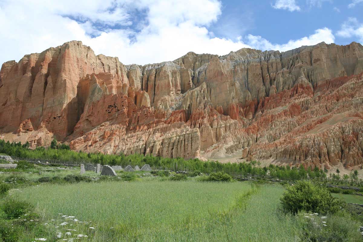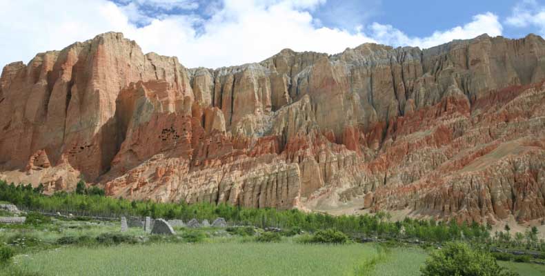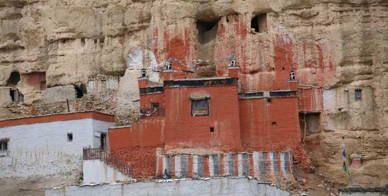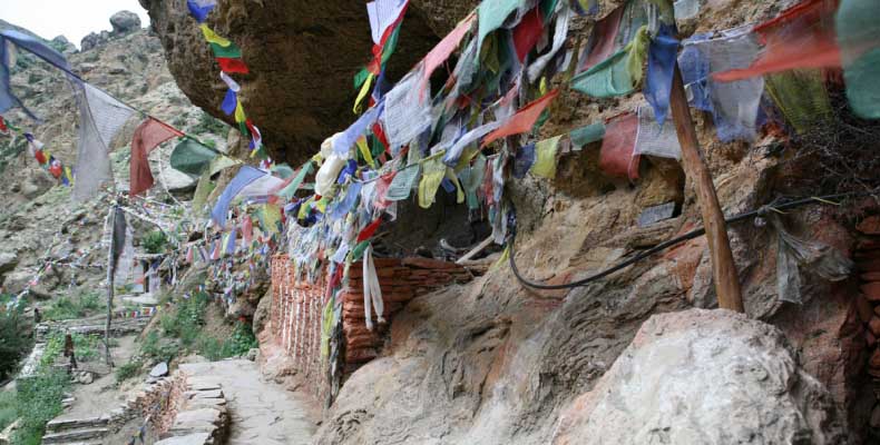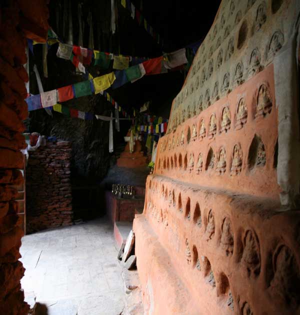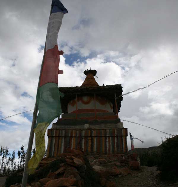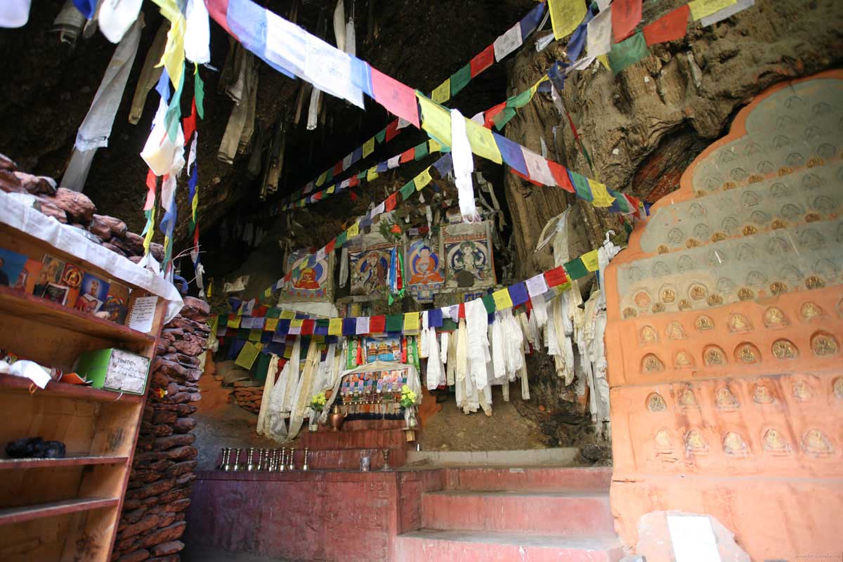 Падма провел рекогносцировку, понял, что это демон кирпичи ворует, и принял решение биться с демоном как раз на месте Дагмара. Демона убил, кишки его размотал и получилась самая длинная молельная стена (mani wall) – 240 метров. А скалы кровью демона измазал. Поэтому они и красные. А сердце демона закопал под ступу в Гар Гомпа (мы еще дойдем).
