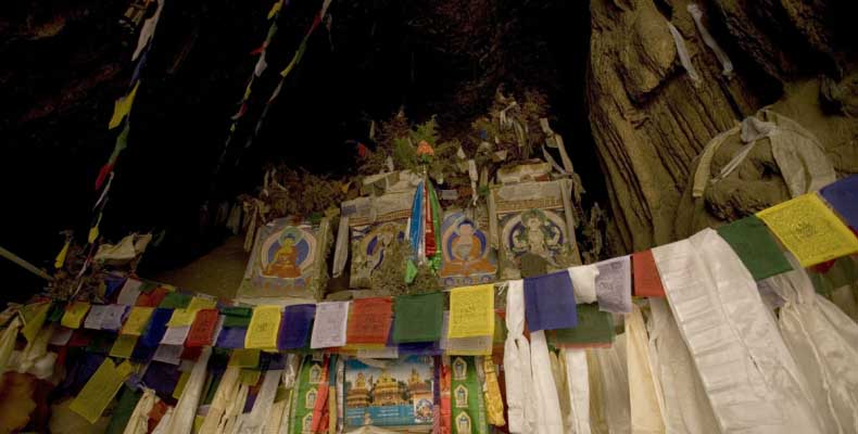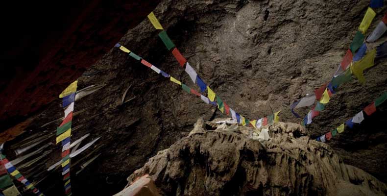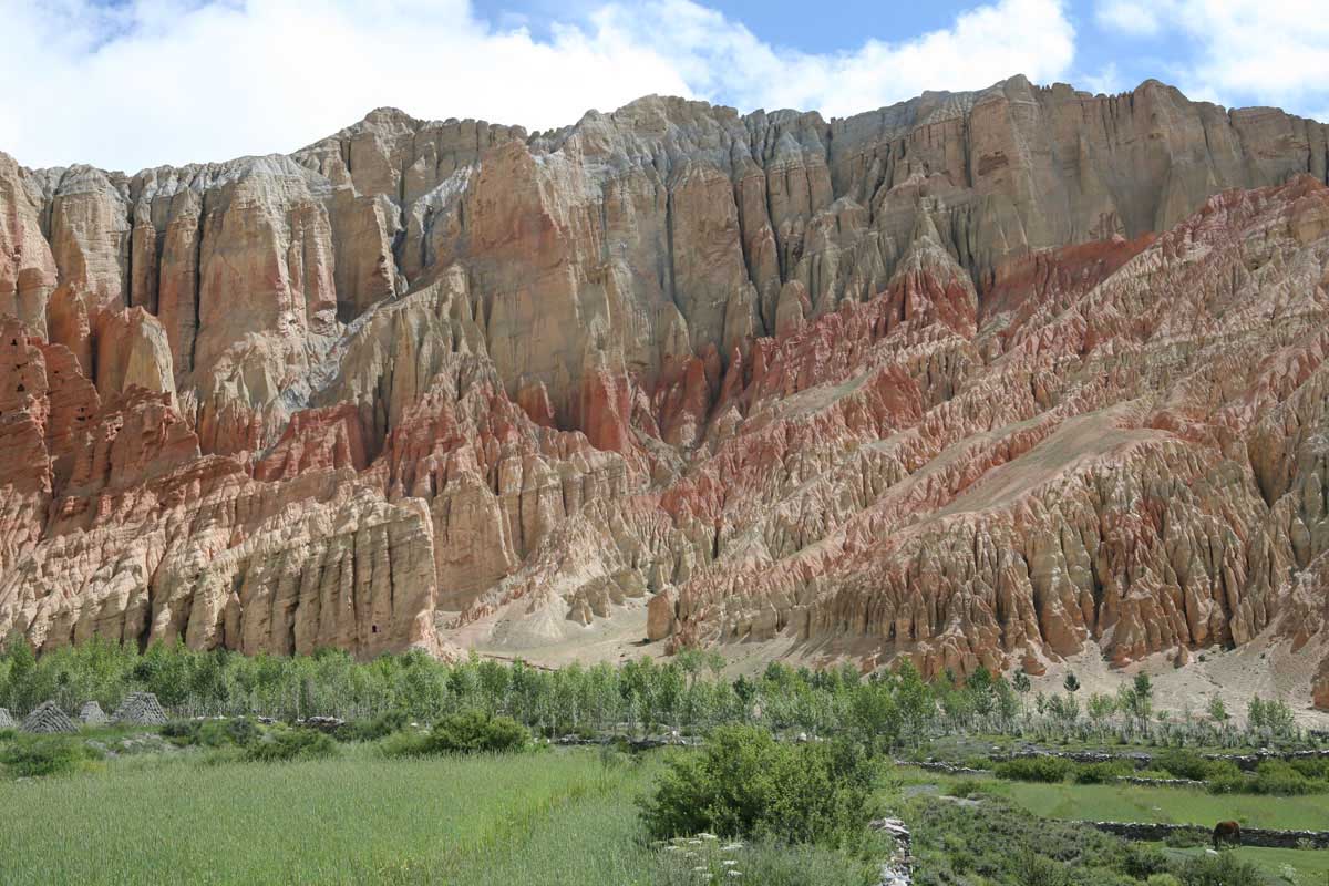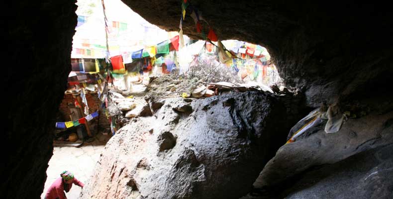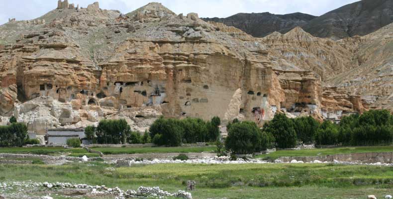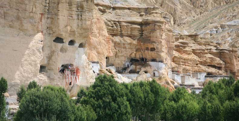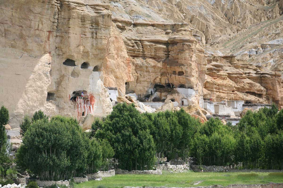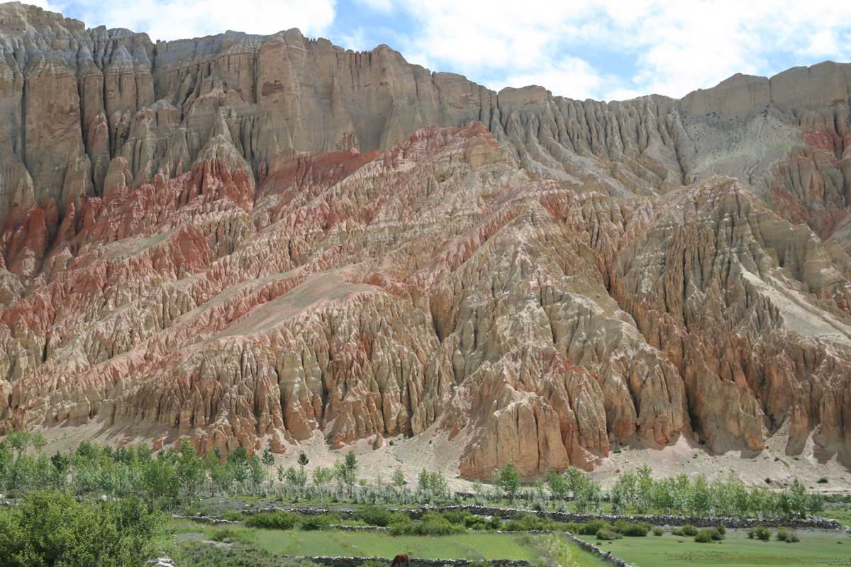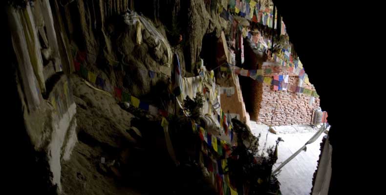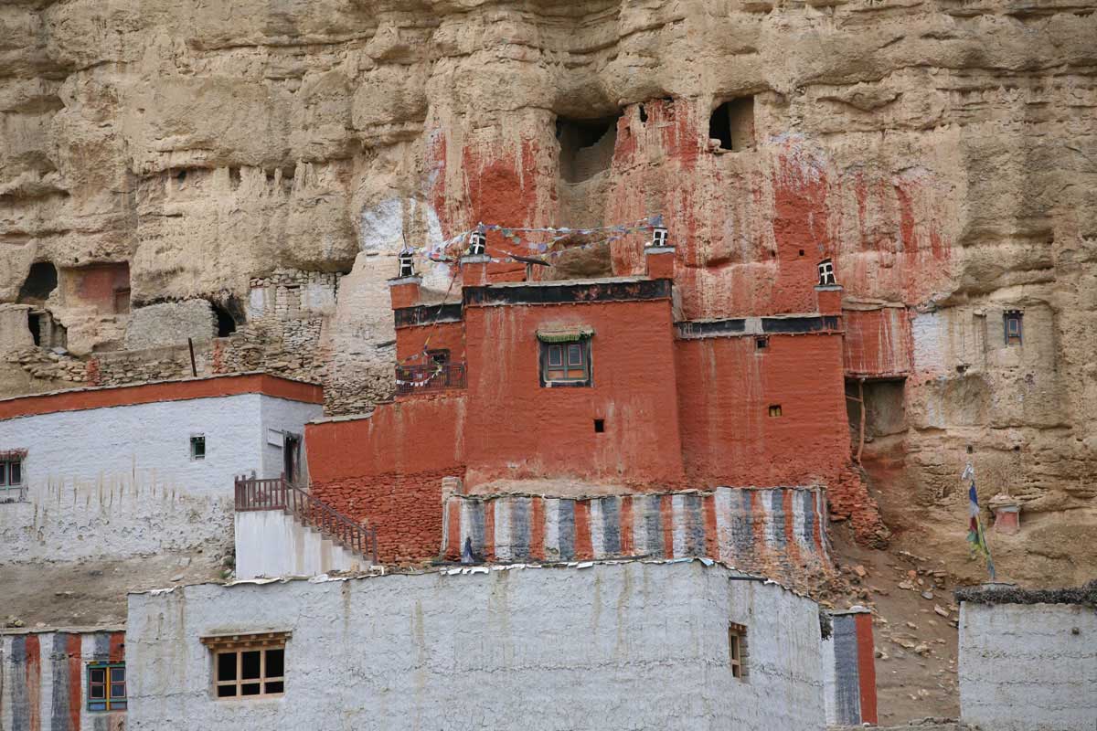 Падма провел рекогносцировку, понял, что это демон кирпичи ворует, и принял решение биться с демоном как раз на месте Дагмара. Демона убил, кишки его размотал и получилась самая длинная молельная стена (mani wall) – 240 метров. А скалы кровью демона измазал. Поэтому они и красные. А сердце демона закопал под ступу в Гар Гомпа (мы еще дойдем).