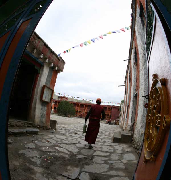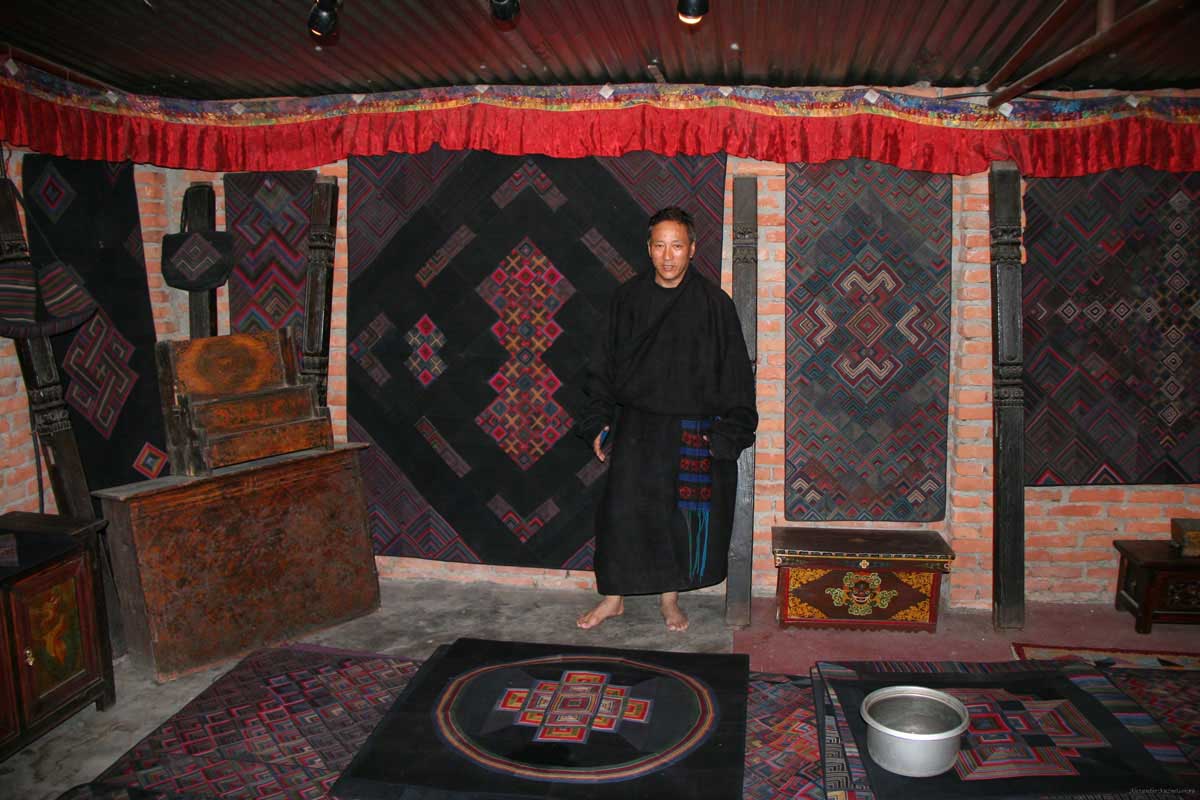 На следующий день прощально встречался с Давой. В конце концов опять под проливным дождем, по колено в коричневой воде попали в тибетский магазинчик недалеко от Буданат ступы. Тибетец оказался настоящим художником. Имя Пасанг Церинг. Мы долго бродили в его мастерской, пропахшей мокрой ячьей шерстью.