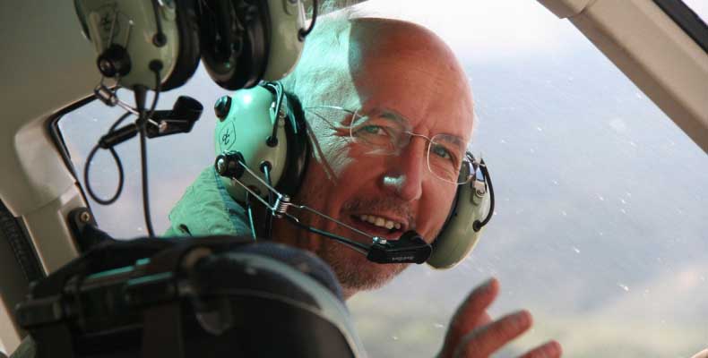 Я летал первый раз на вертолете. В целом здорово, и не так страшно, как на джипе. Потрясающий эффект, когда вертолетик над обрывом наклоняется немного вперед и как бы ныряет вниз. Здорово! Я задумал вертолетный фототур над ЛоМантангом...