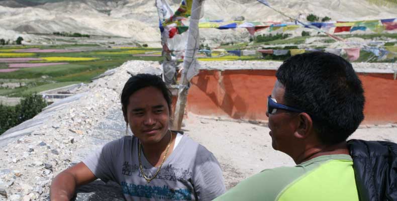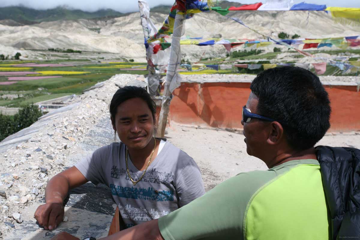 ЛоМантанг большой – в нем живет тысяча человек. Мы селимся в гестхаусе, принадлежащем племяннику короля Сурендра дай, а скорее, внучатому племяннику – Цавангу. Молодой парень 25 лет, активный бизнесмен, непьющий, энергичный. Братья и сестры, кто в Лондоне, кто в Америке, кто в соседней деревне. Возглавляет клуб молодых Ломантанцев. Их там человек 60, и они обсуждают на заседаниях, как жить дальше. Молодец.