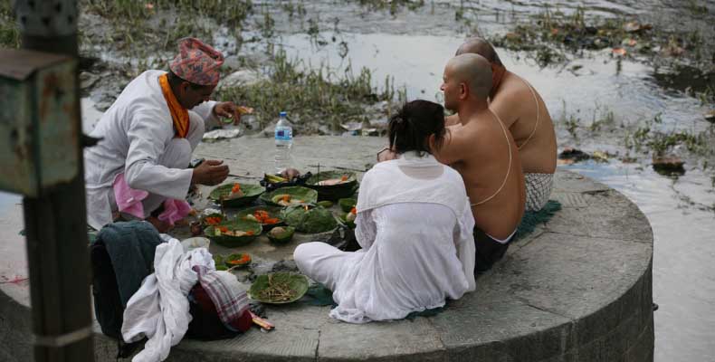 Селюсь в гостинице Дварика (Dwarika’s). Отличный отель, восстановленный из старого разрушенного комплекса зданий этим самым мужиком - Дварика. Стильный, с бассейном, с хорошей кухней. Нет вопросов. Поход по стандартным местам, чтобы убить время. Сразу скажу, что несмотря на то, что я не первый раз в этом городе, даже обычные туристические места открылись с другой стороны. Например, тот же Пашупатинат почему-то всегда обходят с одной стороны реки, а если пойти с другой, то там индуистский храм, один из четырех самых почитаемых. Правда, неверных не пускают из соображений безопасности.