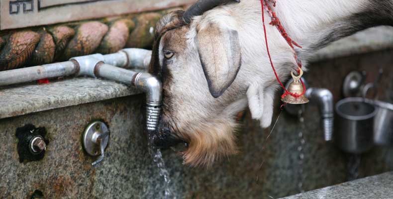 В монастырь надо было зайти с утра обязательно. Вообще, в Муктинате четыре монастыря, но основной, конечно, Темпл с негасимым огнем изнутри. То ли погода не способствовала, то ли прошла эйфория четырехлетней давности, то ли адаптация еще не прошла (все-таки сразу на 3700 метров), но в этот раз храм произвел на меня удручающее впечатление. Маленький, пахучий, у входа долгая очередь, поскольку всем индусам надо выполнить небольшую пуджу: например, разбить кокос и вылить молоко из него на специально раскрашенный камень (эта процедура символизирует жертвоприношение).