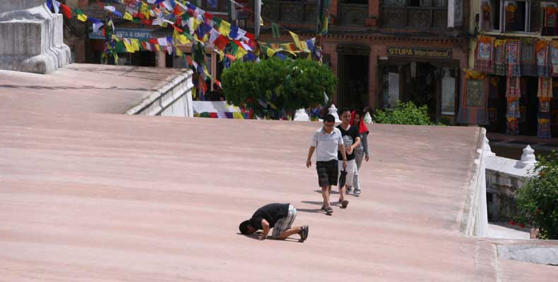 Сорос, которого на самом деле зовут Сорадж, рассказал около Сваявбунат ступы интересную историю, или легенду. "Когда-то все люди делились на группы: священники," - показал он на указательный палец на растопыренной пятерне, держа ее горизонтально, - "военные, ремесленники и слуги". Тут он уже обнимал мизинец. "И все были необходимы и потому равны. А потом случилось так", – и он повернул ладонь вертикально мизинцем вниз.