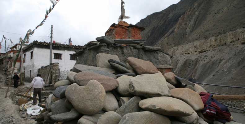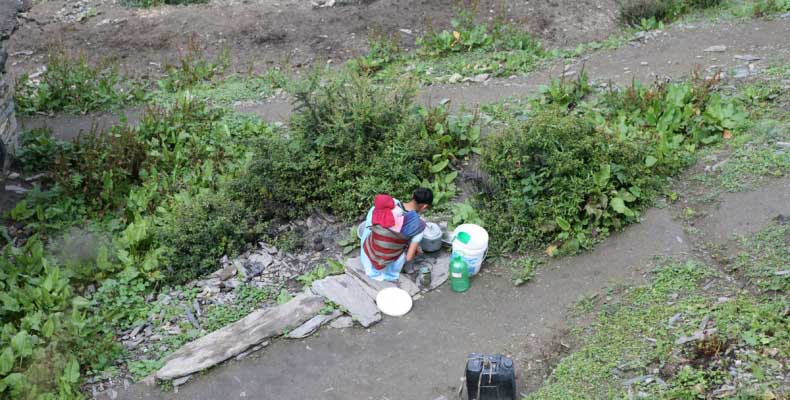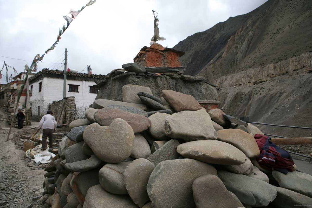 Мы должны были остановиться в следующей деревушке Челе, но Чуксанг-колу (речку) нужно переходить вброд утром – к вечеру тающие за день снега Даулагири наполняют ее, уровень воды слишком высок для брода.