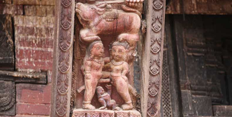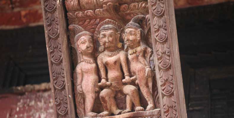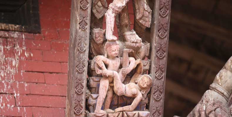 В какой-то момент непальцы совершенно перестали плодиться. Не помню уже, с чем было связано такое пренебрежение к сексу. Тогда управитель решил культурно обогатить половую жизнь граждан, и на храмах вырезали сцены сексуальных игр и затей.