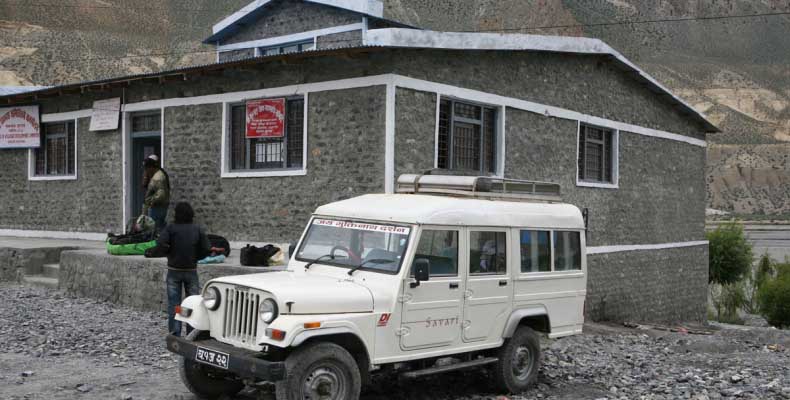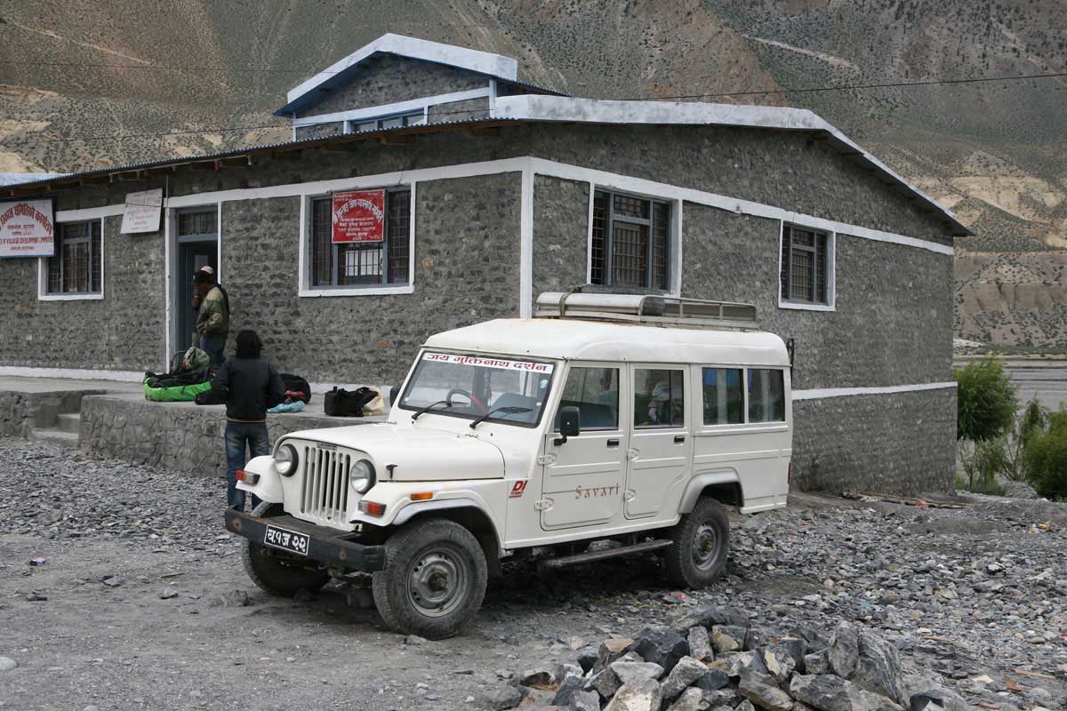 В самом отеле человека 2 живет и несколько ребят хозяев тянут спутниковое телевидение. Прямо за отелем на площадке штук десять джипов, которые ездят в Джомсом и обратно.