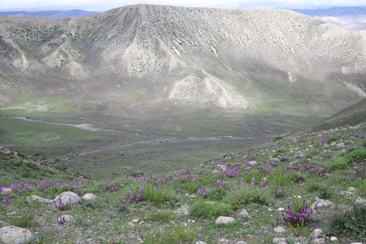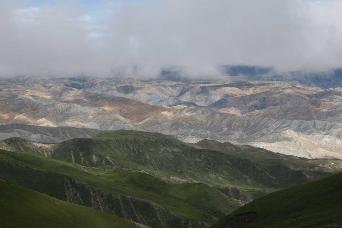 Дава кивает на вершины холмов (холмы метров по 5000). Там лежит снег.
