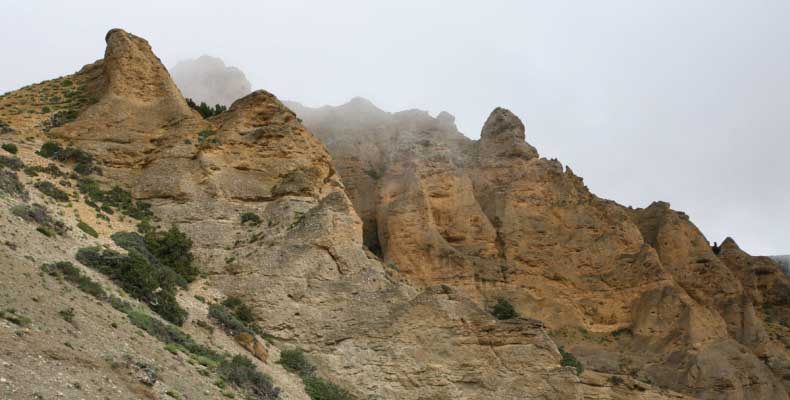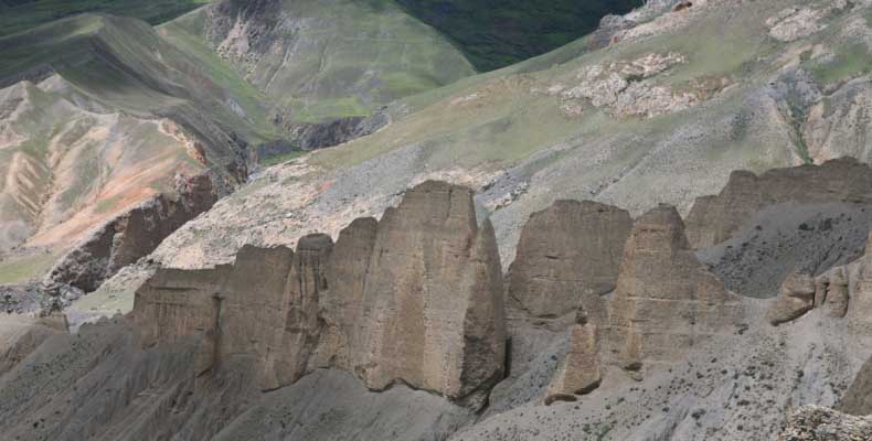 После стены мимо деревни Титан идет очень красивый каньон, по обеим сторонам которого расположены очень красивые скалы. Вернее, это не скалы, а плотный грунт причудливой формы разных цветов. Как назвать по-русски правильно эти образования?