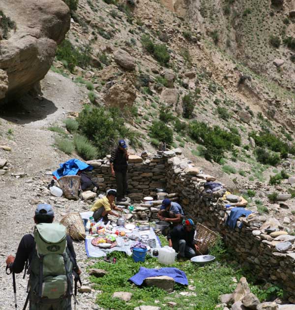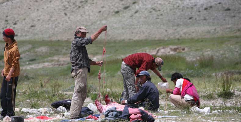 Да еще Пема (погонщик и проводник) ходит со своими четками и приговаривает что-то вроде: Ома А хум базра гуру Пема сид хи хум. Что означает – силы, сделайте Пему гурой. Пока у сил не очень получается.