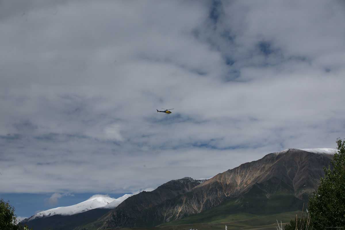 Но с каждым километром, с каждым шагом, с каждым вздохом карма прочищалась и прочищалась. Очищалось небо, и солнце светило ярче. И вот, конечно, вертолетик летит. Ему было тяжело на подлете к Джомсому, но с третьей попытки он пролез (Винни-Пух. Баллада о Пятачке: «Он долго лез, но он пролез, и смело устремился в лес...»).