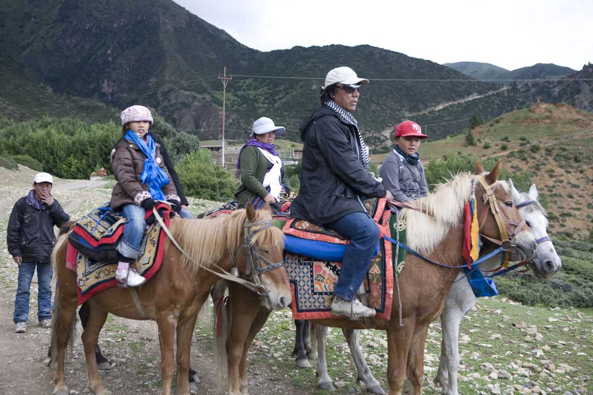 Путь от ЛоМантанг до лагеря занял четыре часа, учитывая, что мы забыли примус, и пришлось за ним возвращаться. Лошадки все разные. Моя – самая спокойная по имени Умбу. Единственная, которая ест конфеты. Черная лягается, рыжая все время ест траву, пьет воду и портит воздух. Та еще компания.