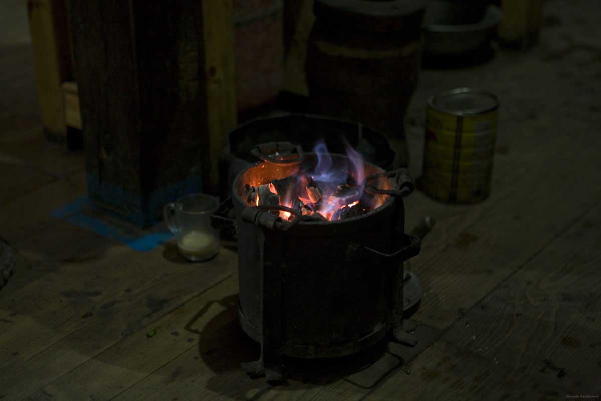 Еду готовили на печке и на огне на полу. В общем, все как у нас.