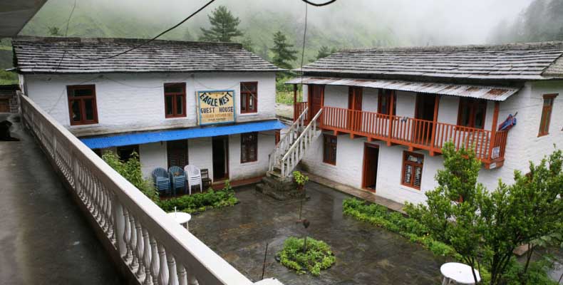Наши остановки должны быть следующие: подвесной мостик, где я делал фотографии долины, Кагбени, зайти в гости к Пеме в Редхаус и почтовое отделение в Джаркоте, откуда посылал открытку в Новосибирск.