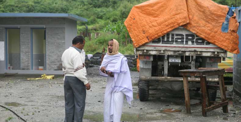 Утром, проснувшись, идем на транспортную станцию в Гассе. Долго ждем какого-то транспорта, вместе с толпой индусов-паломников. Фотографирую садху, которые переворачивают все камни подряд. Ищут что-то священное, наверное, амониты.