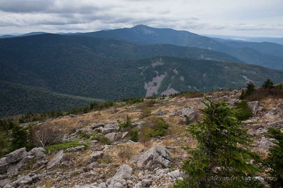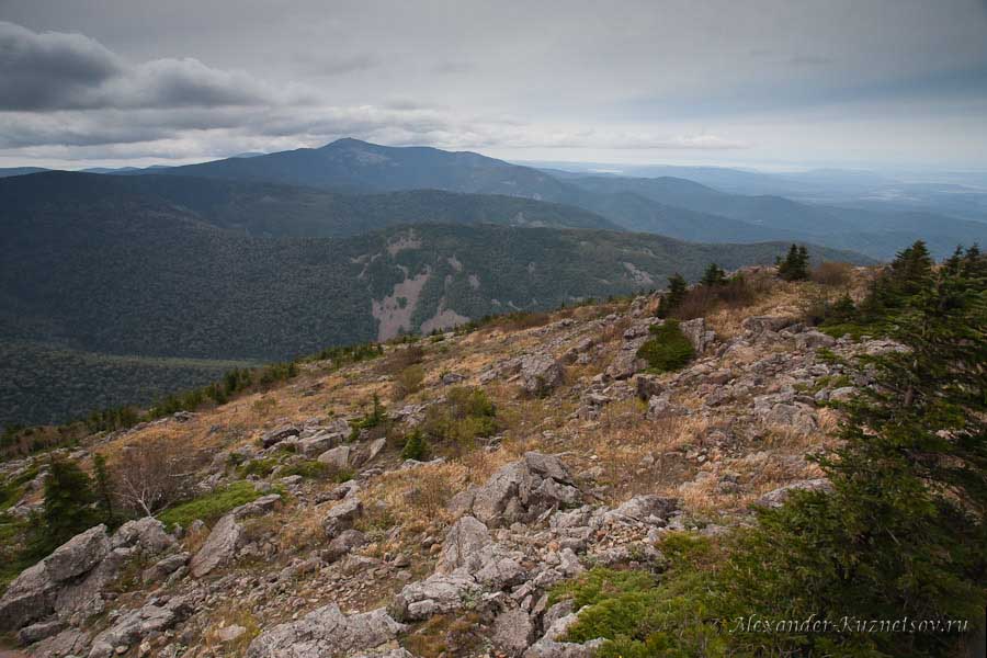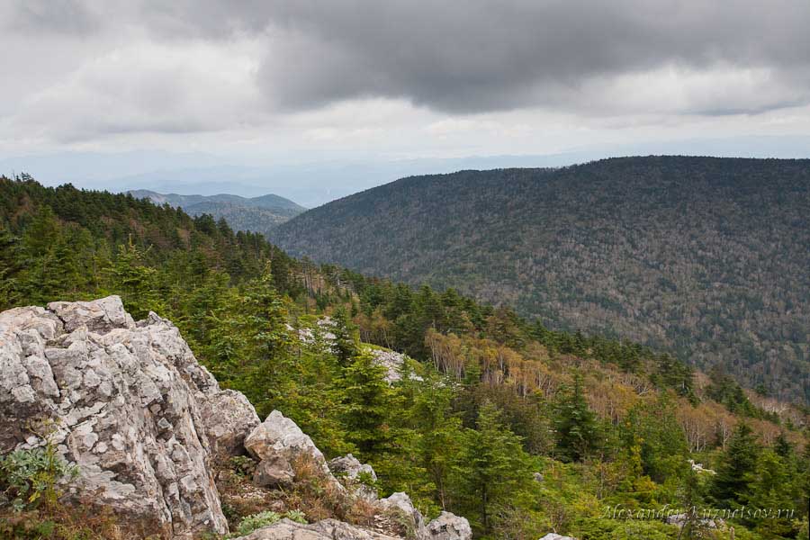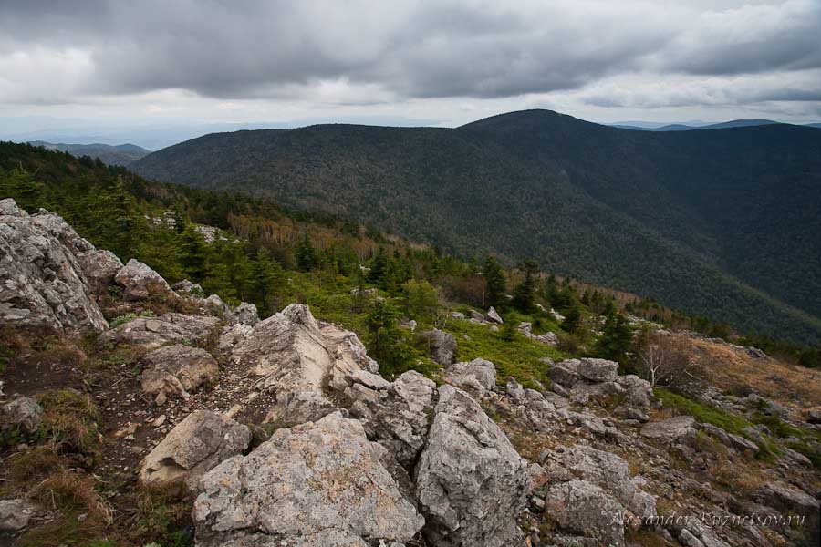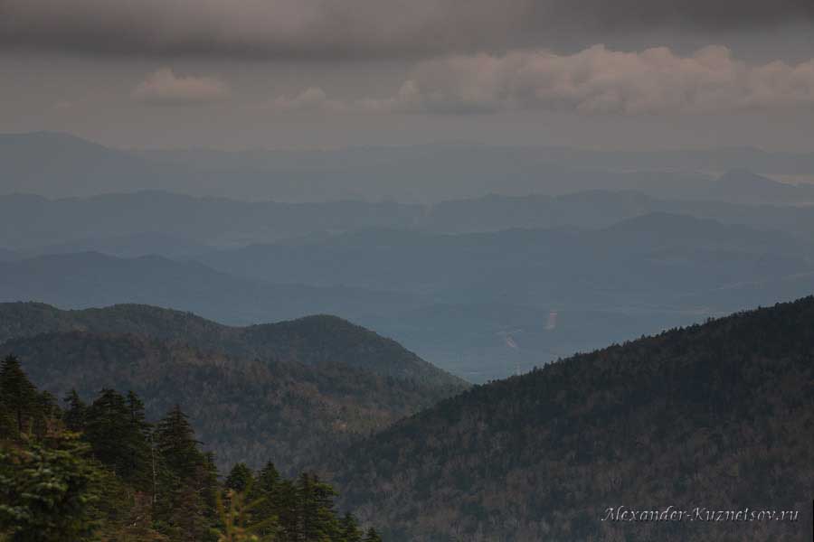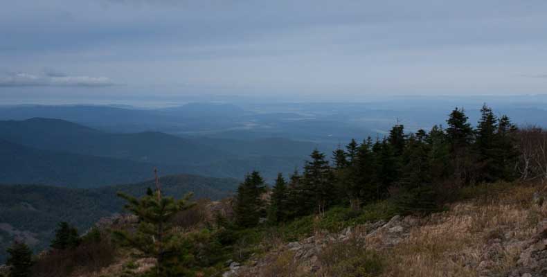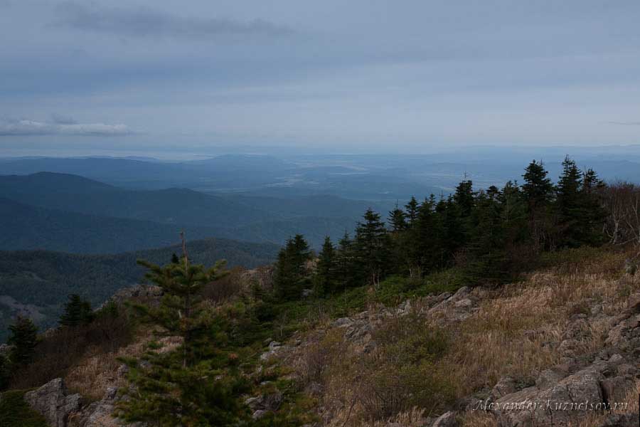 Наверху была дымка. Я поснимал немного, в том числе и Ливадийскую сопку из моего путешествия двухгодичной давности. Кроме нас на вершине были еще две женщины, которые уединились за кустами и, видимо, выполняли какой-то ритуальный танец с криками и бубном. Нас просили не подсматривать.
